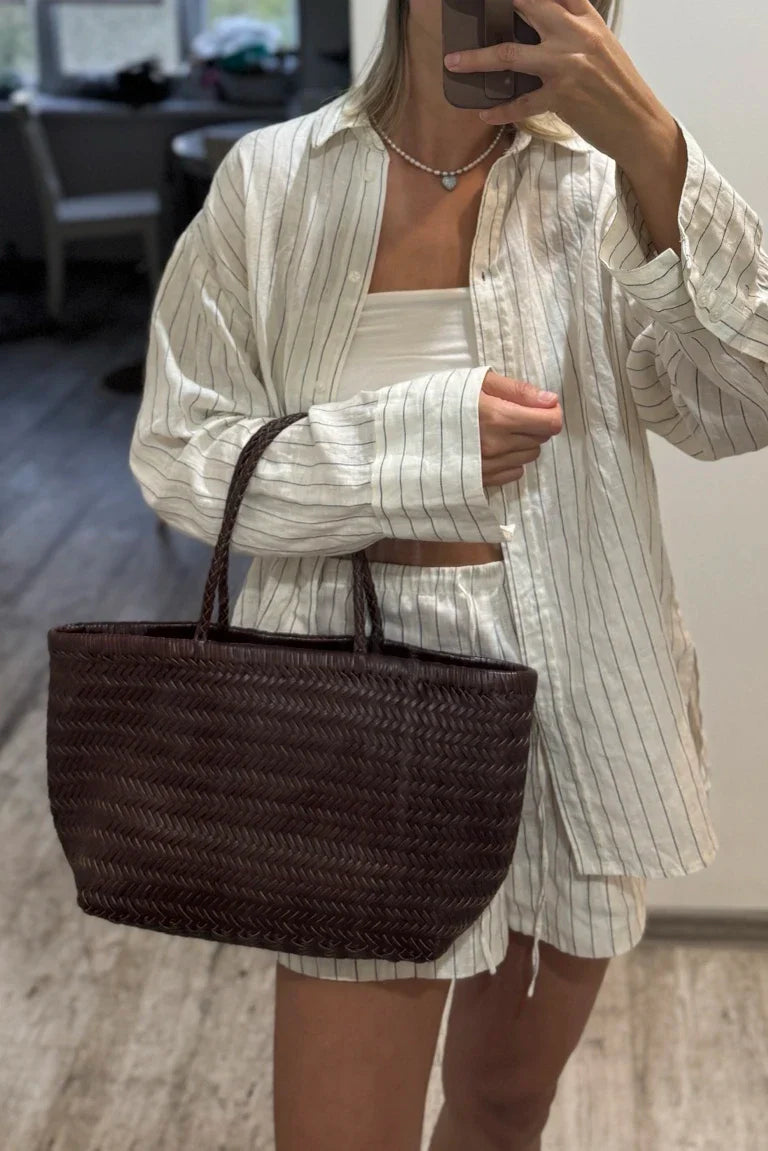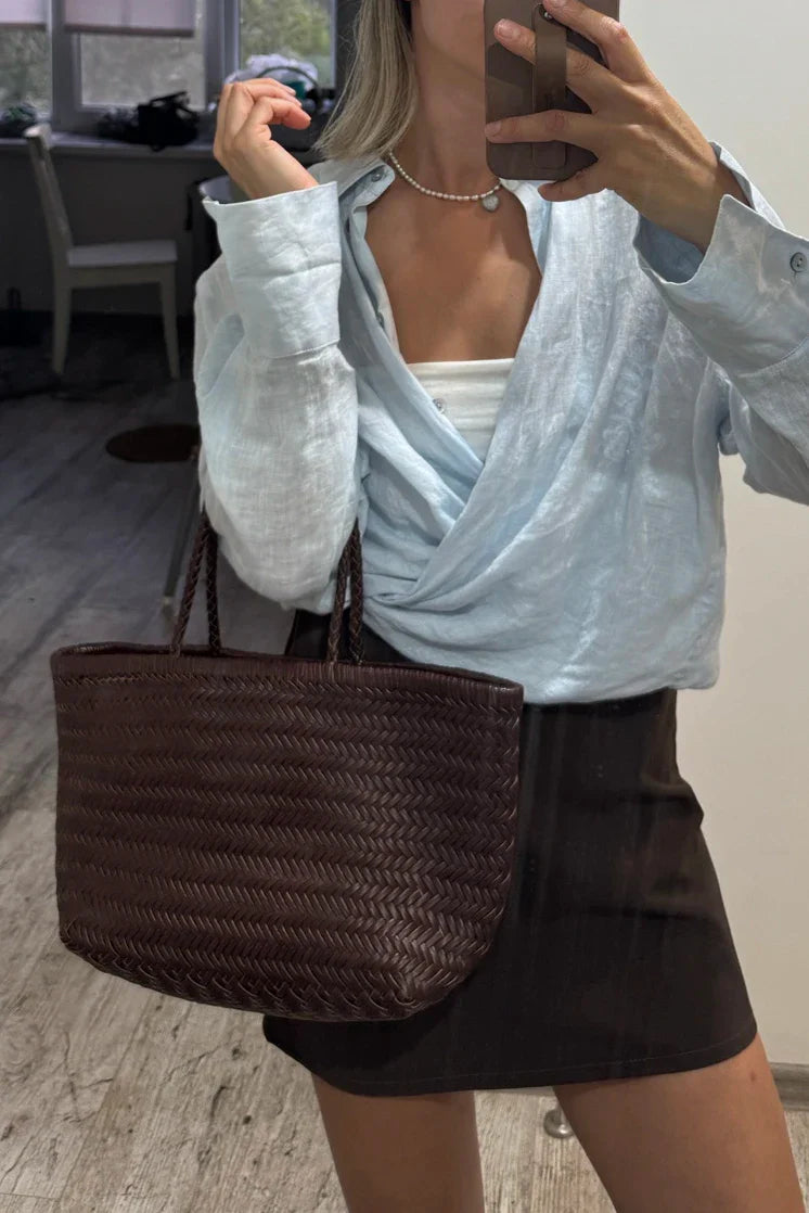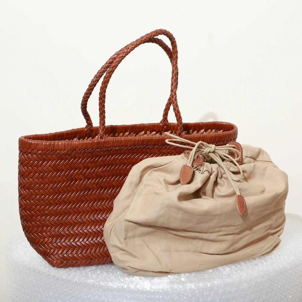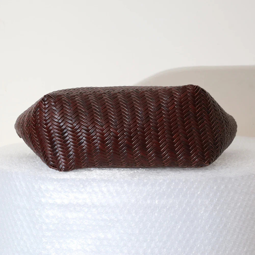 Echte Leder Schultertasche Weben Lässige Einkaufstasche