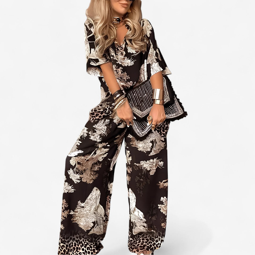 Eleganter und leichter V-Ausschnitt-Top mit langen Hosen für den Sommer