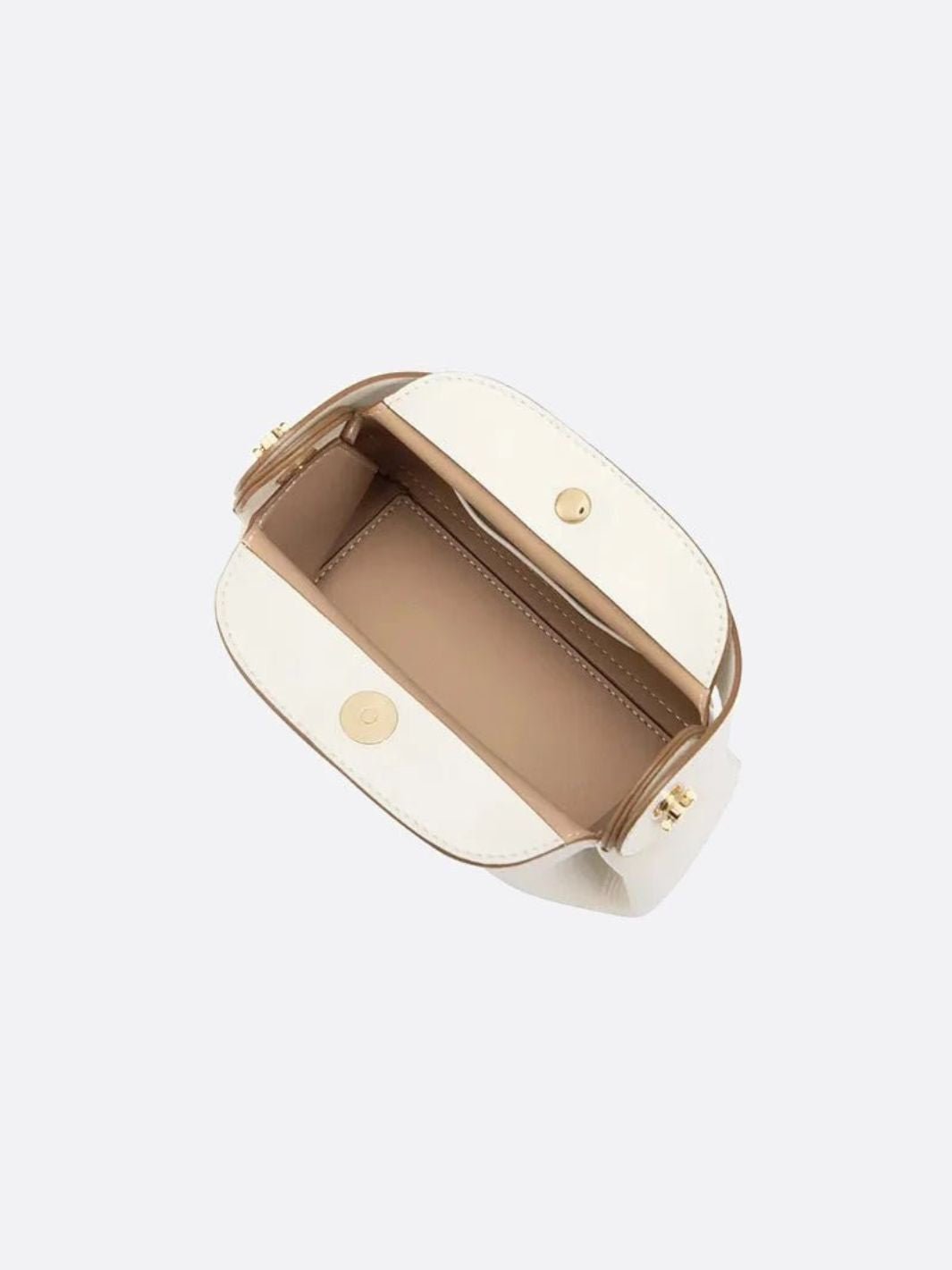 Fügen Sie diese raffinierte kleine weiße Lederhandtasche Ihrer Garderobe hinzu für ein praktisches und zeitloses Accessoire.